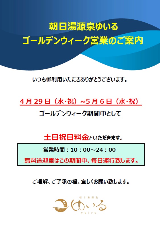 お客様に支えられ朝日湯源泉ゆいるは5周年を迎えました。