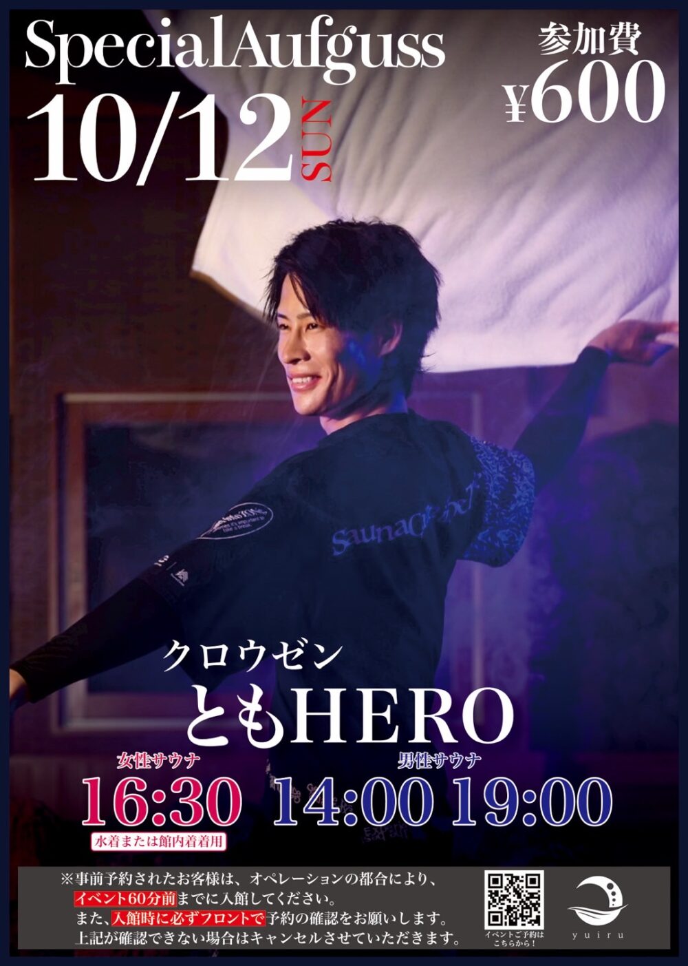 男性: アウフグースサウナ室 14:00/19:00